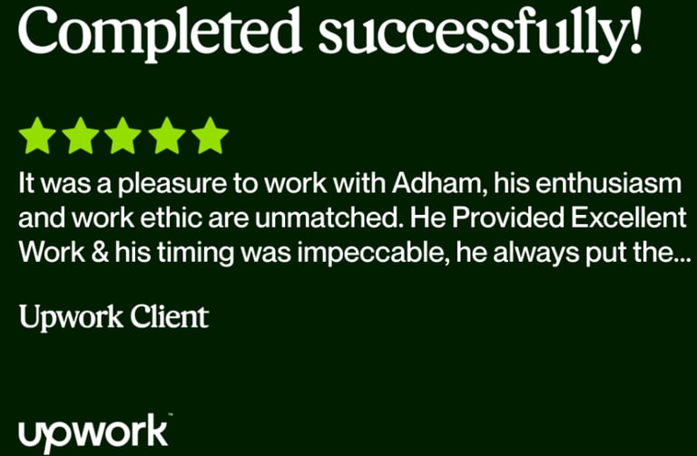 "It was a pleasure to work with Adham, his enthusiasm and work ethic are unmatched. He Provided Excellent Work & his timing was impeccable, he always put the needs of the clients ahead of his own. We Will be looking forward to working with him again!"